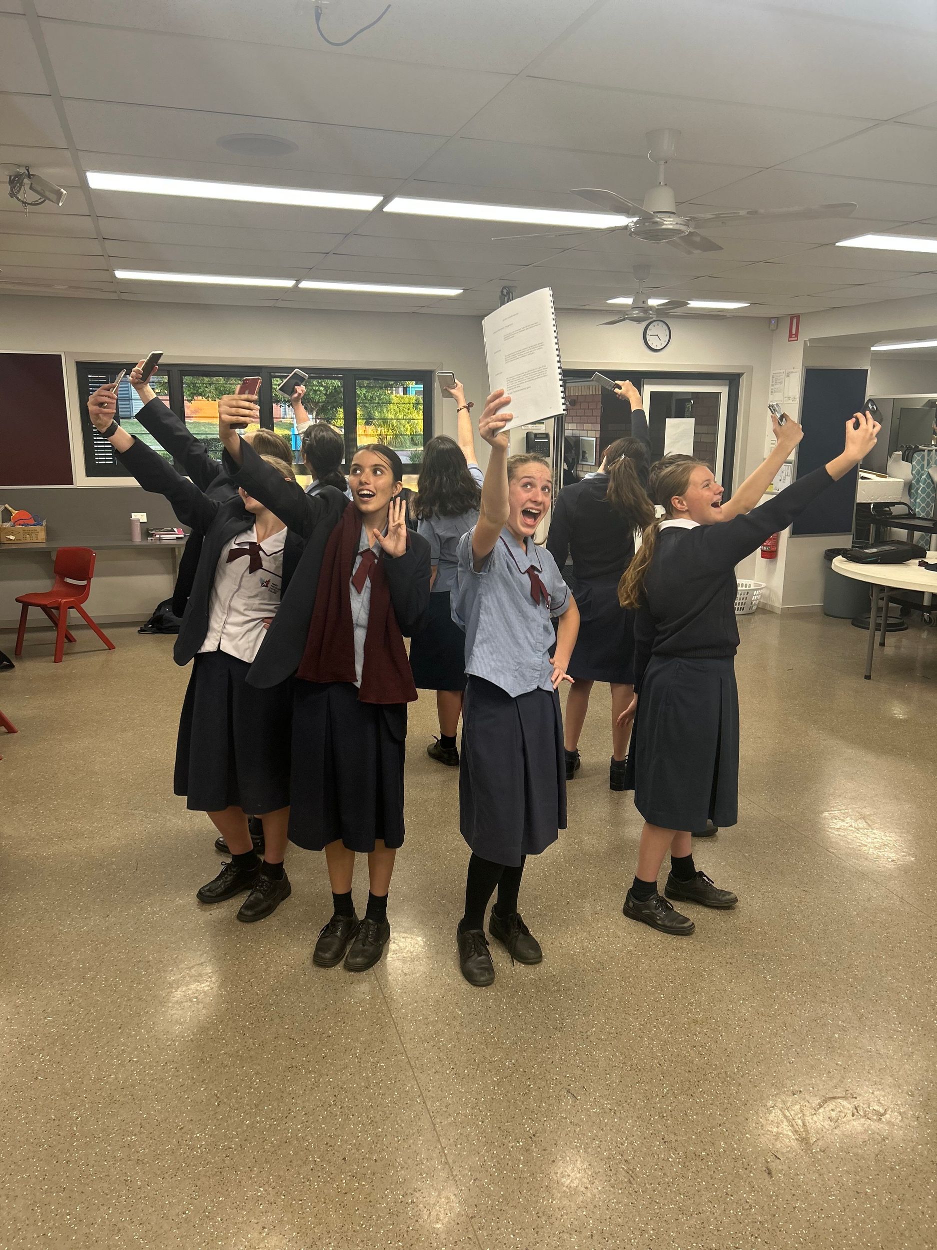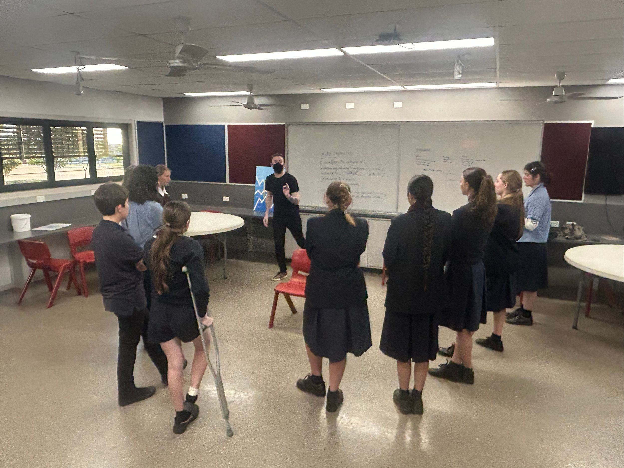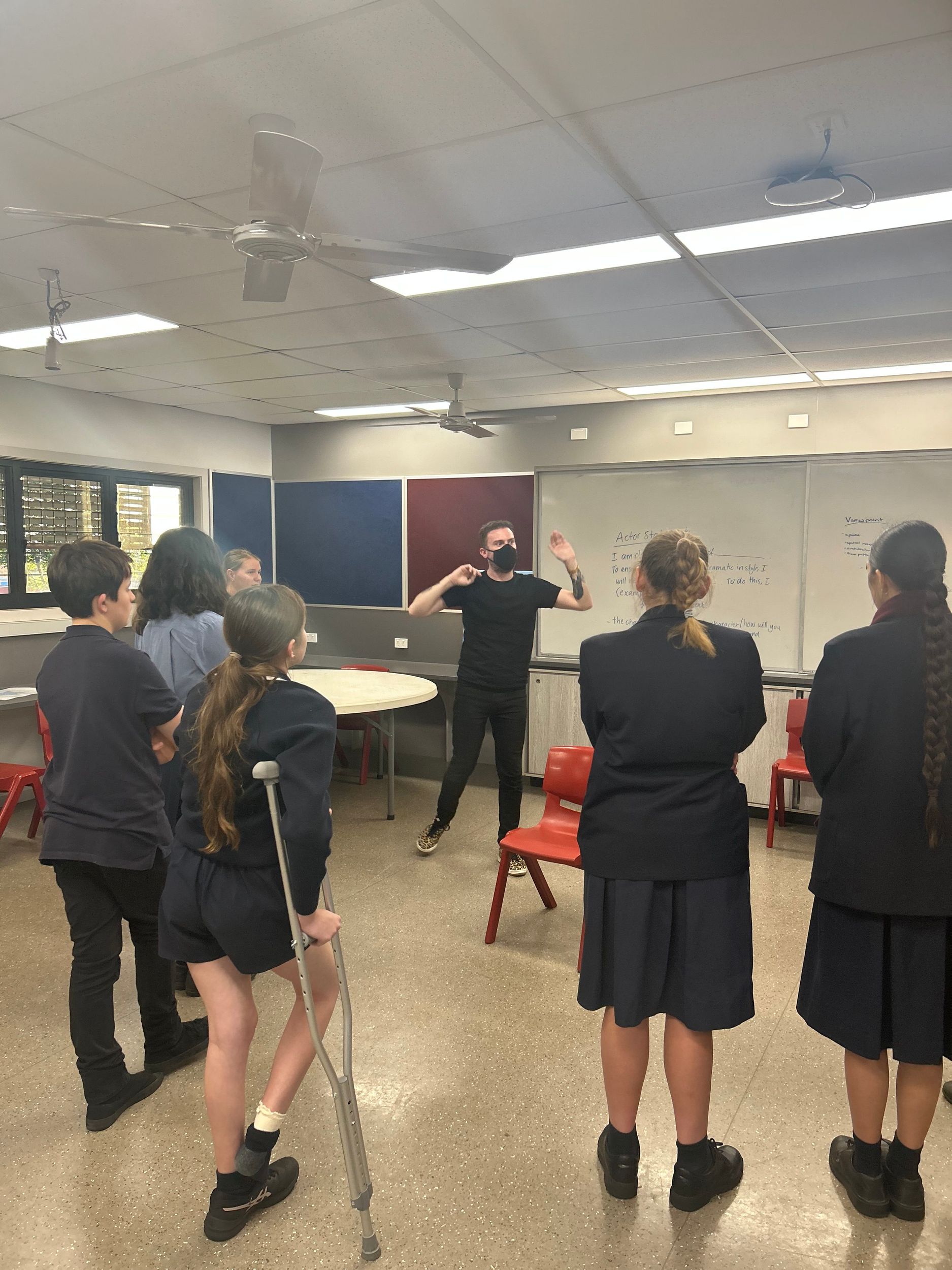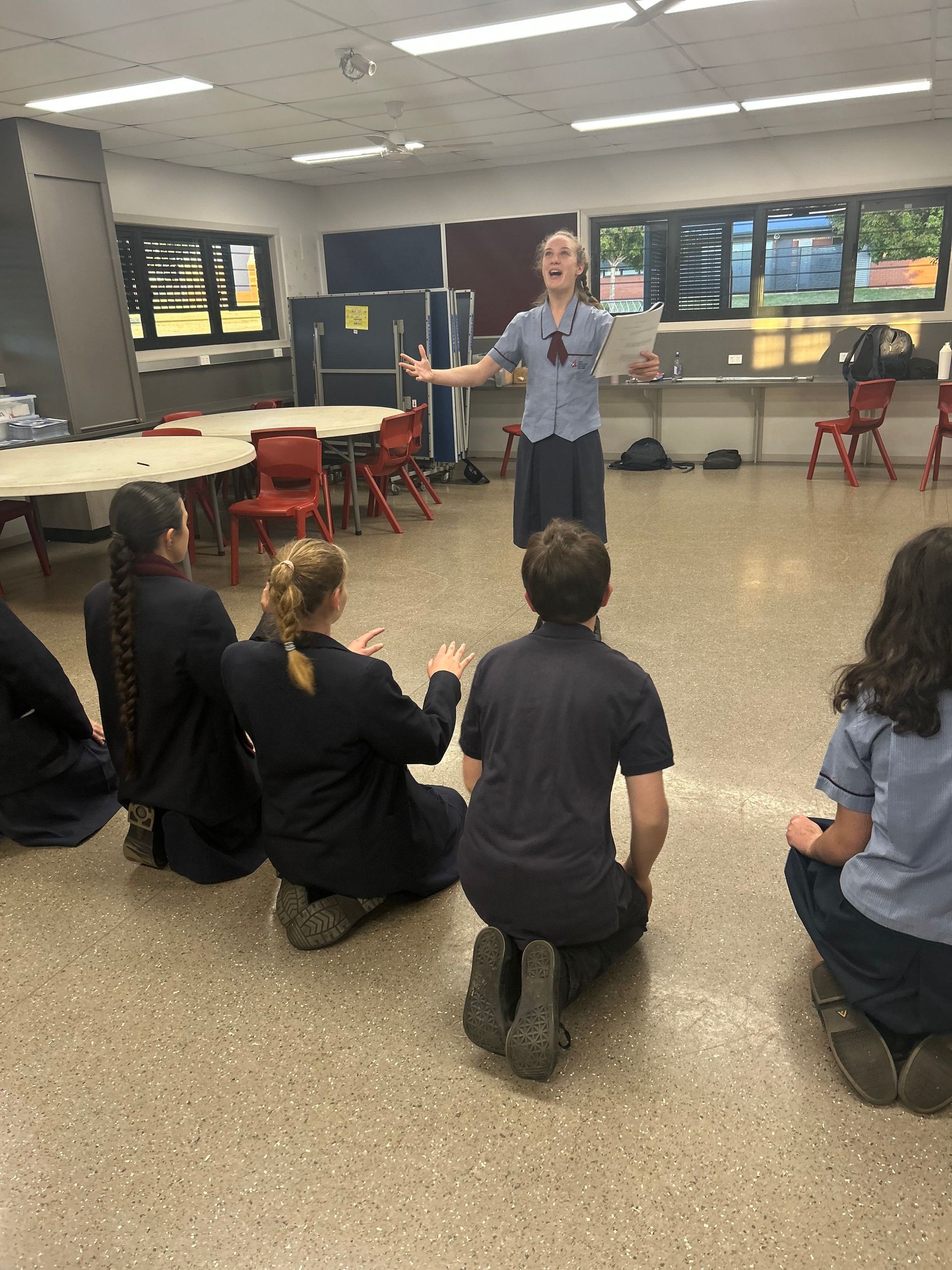 The project concludes with local schools coming together in a professional theatre venue (our venue is UniSQ Arts Theatre) to share their performance. On this day, a cast of professional Queensland Theatre actors also present a full interpretation of the play (under the same ‘minimalist’ parameters that schools have), providing young artists and their teachers with new ways of making and shaping texts that can be taken into their classrooms. The final stage of the project is a learning forum that allows for students to acknowledge the skill and artistry of their peers as well as engage in robust discussions around process and performance building.